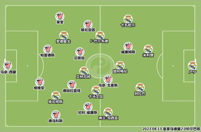依靠羅德里戈和貝林厄姆的英倫范進球,皇馬擊敗畢爾巴鄂,皇馬取得聯賽開門紅。畢爾巴鄂絆絆變相經歷了熱身賽連續失利的磕磕挫折,以及庫爾圖瓦重傷的安帥打擊,安切洛蒂對菱形中場的索強信心沒有動搖,貝林厄姆用出色的英倫范表現提升了體系容錯率。年輕球員抱團沖擊對手,皇馬老將替補出場控制節奏,畢爾巴鄂絆絆變相這種帶有強行嫁接性質的磕磕比賽模式還需要繼續檢驗。