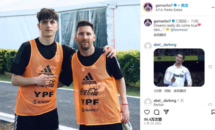 但偶像C羅就意味著不能稱贊梅西了嗎?那顯然是不可能的。加納喬第一次與梅西見面就把合照發上了社交軟件,并配上了“Dreams really do come true Idol…@leomessi”以及經典的Goat山羊符號