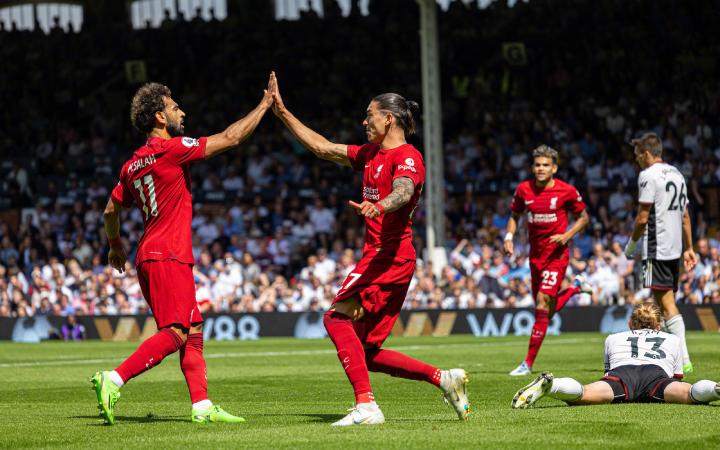 (圖)上賽季初期,努涅斯與薩拉赫之間的化學反應被紅牌打斷,前者的英超處子賽季很不順利。