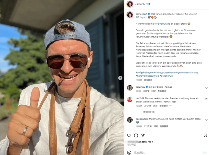 (穆勒歡迎凱恩的ins就用了一個德式諧音梗)