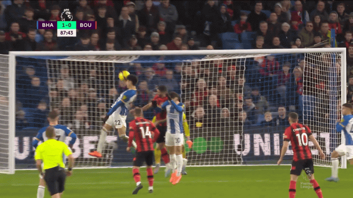 另一個例子發生在主場對陣伯恩茅斯的比賽,三笘薰突破至底線擺脫對方右邊后衛亞當-史密斯,后者在防守過程中也是踉蹌倒地。