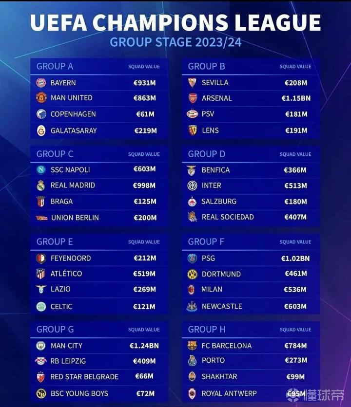 歐冠小組各支球隊身價對比,歐冠死亡之組F組身價沒有低于4億歐元的小組球隊。但D組又何嘗不是各支死亡之組呢?整體球隊陣容實力差距不大:◎本菲卡:3.66億歐元◎國際米蘭:5.13億歐元◎薩爾茨堡紅牛:1.8億歐元◎皇家社會:4.07億歐元只有薩爾茨堡紅牛陣容身價差距較大,但是球隊善于調教小將的這支紅牛潛力同樣不可小覷。其他小組方面,身價死亡身除了A組的對比低拜仁和曼聯差距不大外,B/C/E/F/G組都屬于一超多強的組F組存在,阿森納、歐冠皇馬、小組馬競、各支巴黎、球隊曼城、身價死亡身巴薩,對比低看起來小組出線懸念不大,組F組畢竟絕對實力在這里擺著。歐冠#足球新聞#