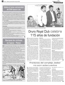1896年5月,奧魯羅皇家俱樂部(Oruro Royal Club)在海拔3740米高的城市奧魯羅成立,這是玻利維亞最早的足球俱樂部。