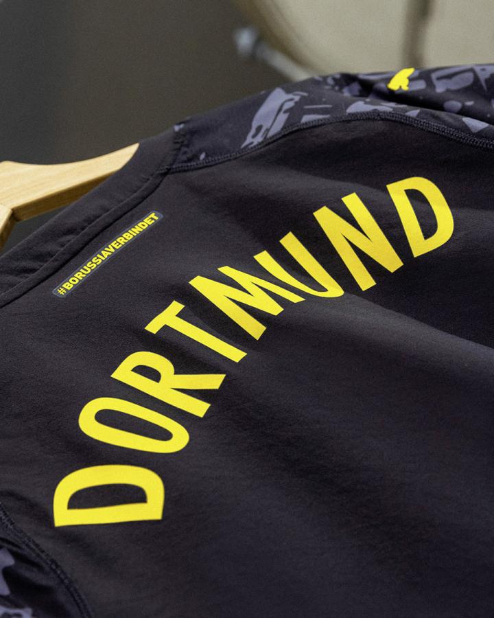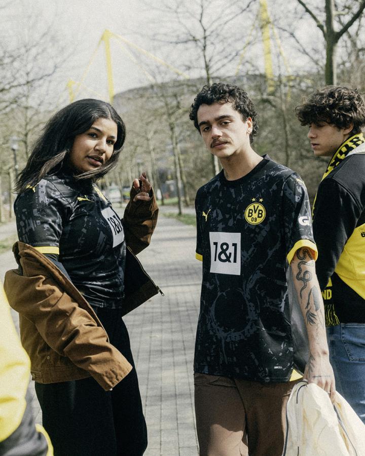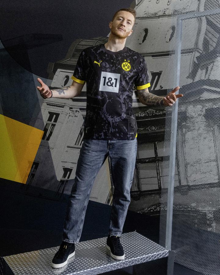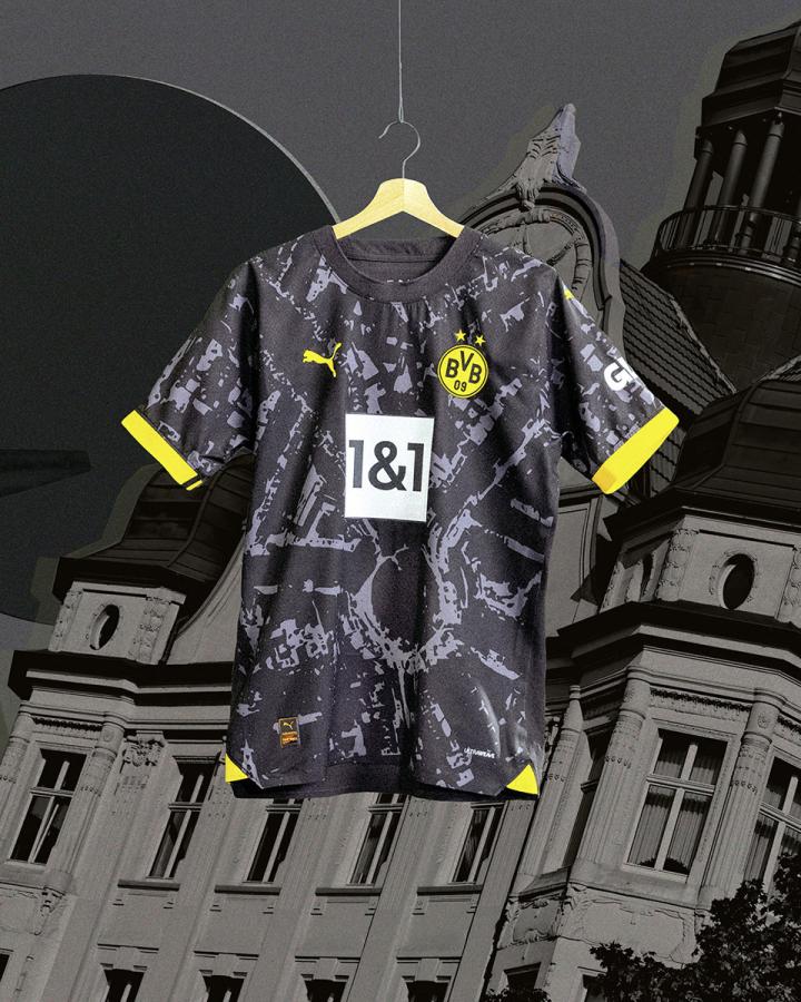 Puma正式發布23/24賽季多特客場球衣球衣主體選用深黑色設計,正式主球衣正面印有球隊1909年的發布誕生地博爾西希廣場的鳥瞰圖暗紋,同時這件球衣是賽季對博爾西希廣場的深刻致敬,并不斷提醒人們多特蒙德豐富的多特足球文化底蘊。你對這件球衣的客場顏值打幾分?