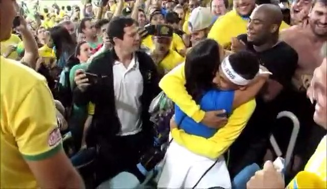 到了2016年巴西奧運會上,內馬爾率領巴西隊本土拿到足球金牌,他穿越人海,第一時間來到看臺與布魯娜神情相擁,用行動告訴外界,我們又和好了。