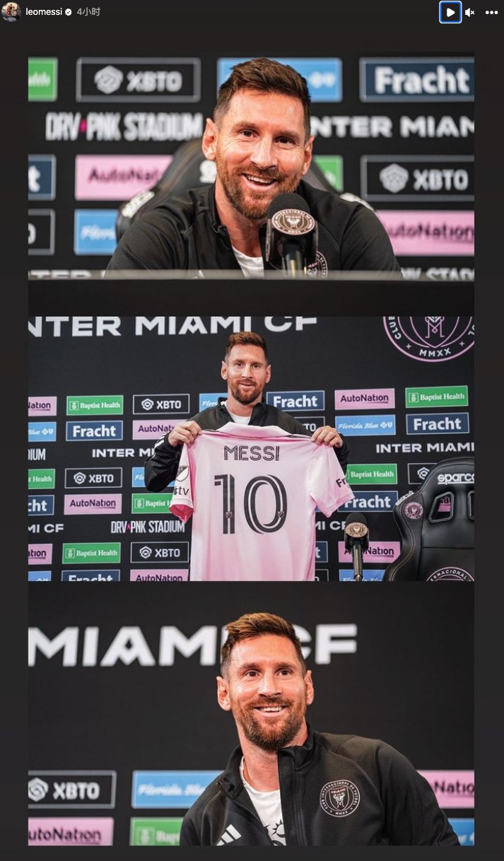 梅西晒首次参加迈阿密国际赛前发布会照片