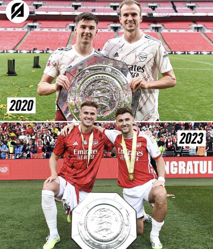 How time flies, time flies!2020年,霍爾丁和蒂爾尼一起舉起社區盾獎杯,前不久,兩人一同再次合影拍照。今天,兩個人都要分離,各自去其他球隊。蒂爾尼遠去西班牙,霍爾丁則可能要法甲。兩人都擔任過阿森納的場上隊長。