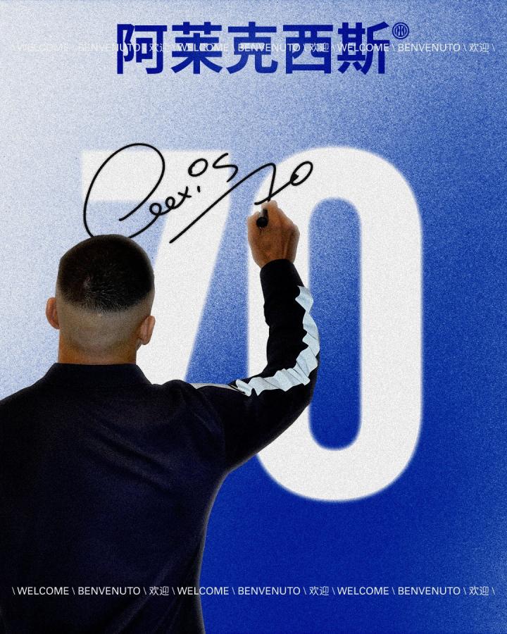 官方消息,新的號碼回歸國米的國米官方34歲邊鋒桑切斯將身披70號戰袍。