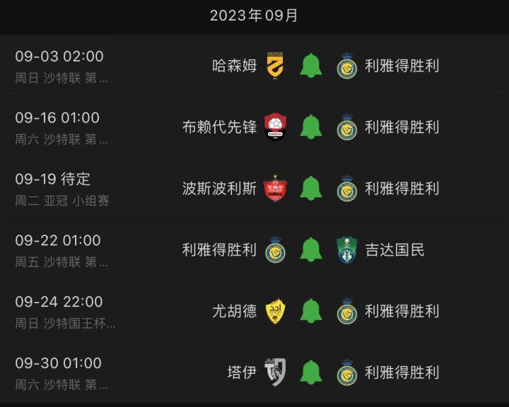 戰勝利雅得青年是利雅得勝利魔鬼八月賽程的最后一場比賽,球隊在八月份總共進行了10場比賽,平均每三天就要打一場比賽。展望9月份,利雅得勝利總共要進行6場比賽,除了4場聯賽還有一場亞冠小組賽和一場沙特國王杯。相信如今C羅狀態的火熱肯定會幫助球隊在三線都取得不錯的成績,只不過38歲的老將也要勞逸結合,期待C羅帶領利雅得勝利在亞冠賽場走的更遠。