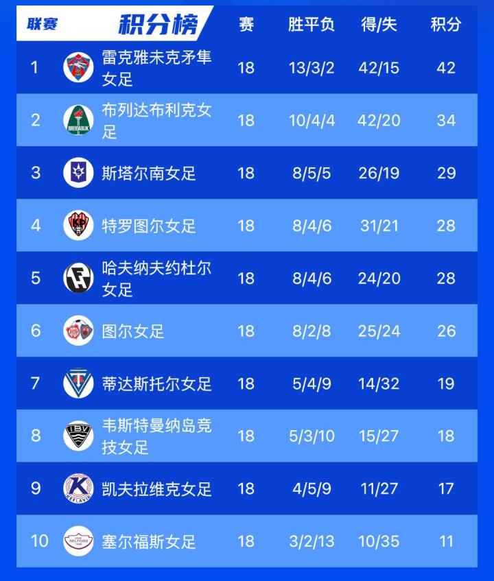 冠軍&歐冠附加賽資格:雷克雅末克矛隼女足降級球隊:凱夫拉維克女足、冰超比賽