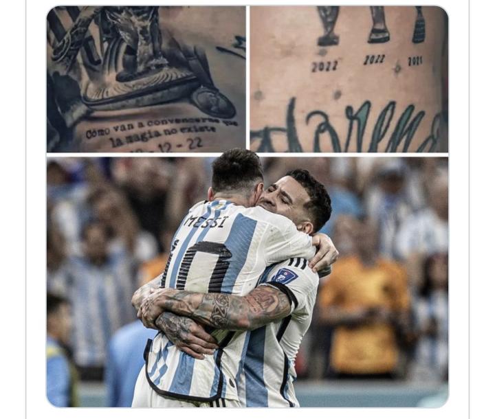 吃瓜了,世界杯之后,奥塔门迪把梅西头像纹到身上了...