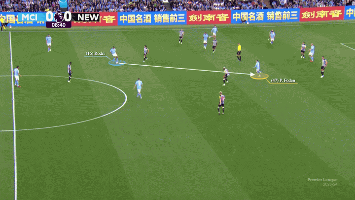 羅德里發現了無人盯防的福登。