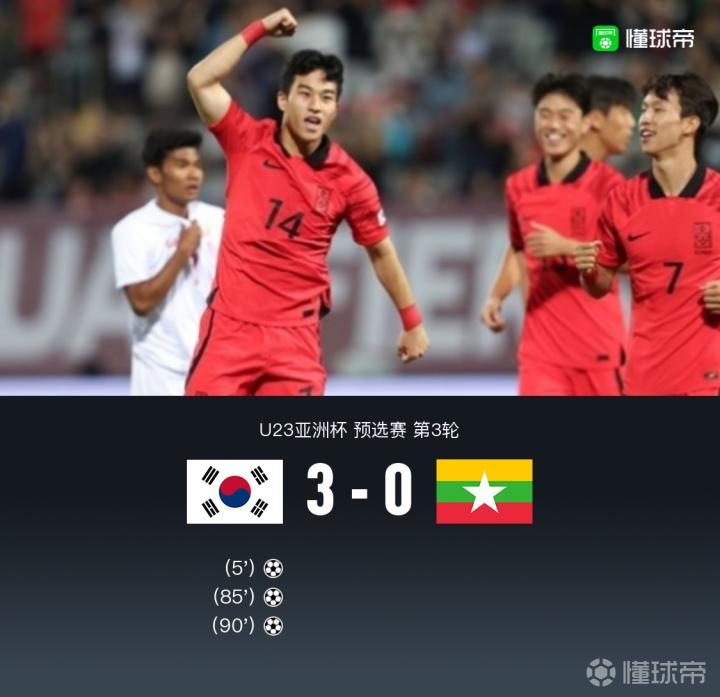 第90分鐘,許律中間一漏,吳宰奕低射破門,韓國國奧3-0緬甸國奧!