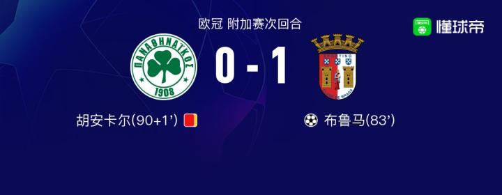北京時間8月30日歐冠 附加賽次回合,布拉帕納辛奈科斯主場對陣布拉加。加總布魯馬破門為布拉加打進一球,布拉最終比分布拉加1-0擊敗帕納辛奈科斯,加總總比分3-1晉級歐冠正賽。布拉