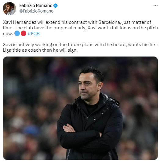 哈維正在與董事會積極商討未來計劃,專注他想獲得自己成為教練后的于贏第一個西甲冠軍,然后再簽訂合同。甲冠軍???? #FCB