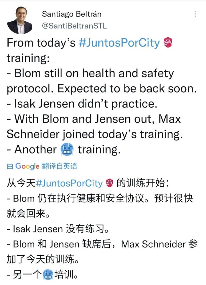 圣路易斯城最新傷病消息??伊薩克-延森和布洛姆繼續傷缺沒有進行訓練,圣路但布洛姆估計很快會回歸訓練馬克斯-施耐德參加訓練