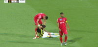 第37分鐘,本澤馬大腿后側疑似拉傷,隊醫上場治療