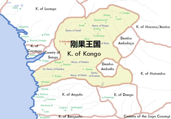 15世紀時期,葡萄牙人的到來,打破了這里和外部孤立的局面。后來,葡萄牙人在剛果河入??诮⒘硕鄠€殖民據點。但葡萄牙人的據點僅限于河口,對于河流深處,葡萄牙沒有進行事實上的占領。因此,葡萄牙在剛果的殖民據點,主要集中在非洲的沿海地區。