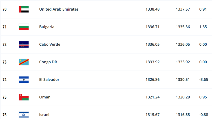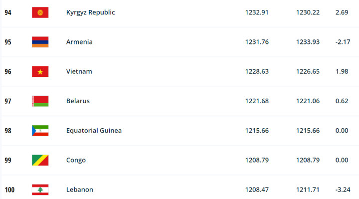 剛果共和國排名第99位,低于中國隊的排名。