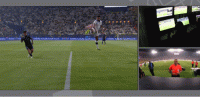 第20分鐘,C羅頭球破門,裁判觀看VAR后判罰其犯規在先,進球無效