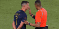 第22分鐘,C羅一臉迷惑連連搖頭,裁判上前向其解釋