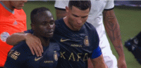 第43分鐘,馬內與桑托斯相撞后爆發沖突,各打五十大板,C羅充當和事佬