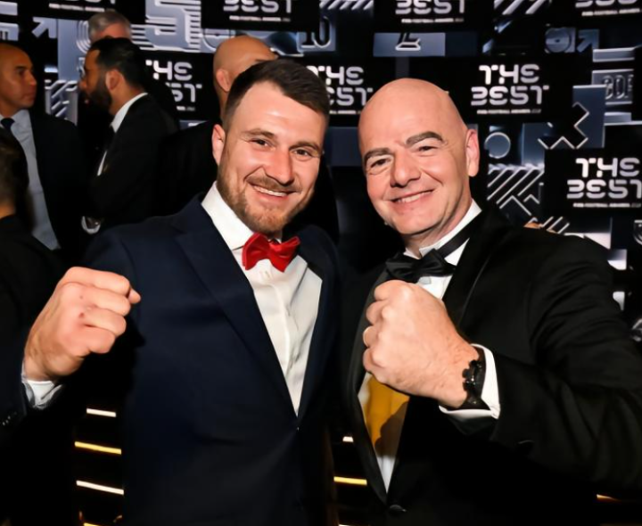 場下的梅西和姆巴佩為他鼓掌,而競爭者里沙利松和帕耶,也開心的和他合影。在現場,奧萊克瑟儼然成為一名“大明星”。