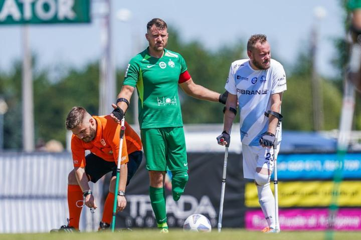 進球的一刻,奧萊克瑟大聲怒吼,隊友也都拄著拐前來慶祝。這一刻,似乎全世界的時間都停止了。像有一道閃電一樣,讓奧萊克瑟曾經的生活,在眼前快速閃過:兒時為足球奔跑的身影,意外到來之后的痛苦和自暴自棄,以及那些拄著拐杖不斷揮汗如雨的日子……