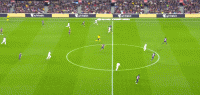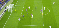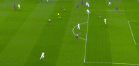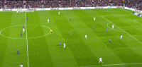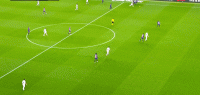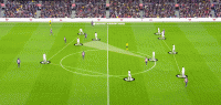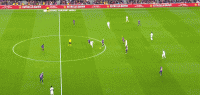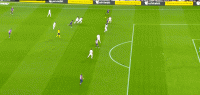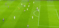 為了減少卡馬文加在防線身前丟球的危險,皇馬中場采用正三角站位來完成出球。莫德里奇無球時的位置靠前,進攻時會注意來到右路接后場來球,幫助卡馬文加獲得正面持球進攻的機會。在擊敗利物浦的比賽中,卡馬文加就是“B2B中場”的角色?;蜀R的兩翼進攻不平衡,需要中場球員插上進攻,年輕的卡馬文加顯然比克羅斯、莫德里奇更適合沖擊禁區。