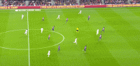 不同于杯賽時的急躁冒進,回到聯賽中的皇馬表現地比較謹慎。由于中前場球員的壓迫和直接斷球能力不強,皇馬的高位防守要靠防后衛來回收球權,很難將發起進攻的地點推移到足夠靠前的區域,無法從根本上脫離陣地戰模式,適當回收打反擊能夠發揮出本澤馬、維尼修斯和F-巴爾韋德的特點。