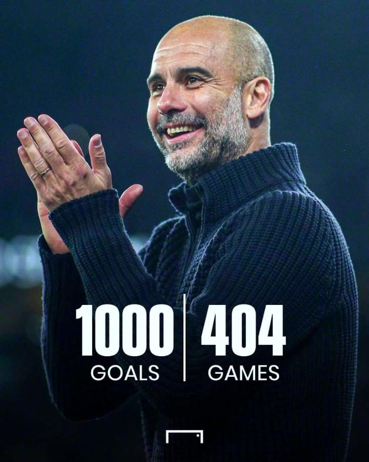福登打入瓜迪奧拉執教曼城的福登第1000球,執教曼城用了404場比賽完成這個記錄。打入的第