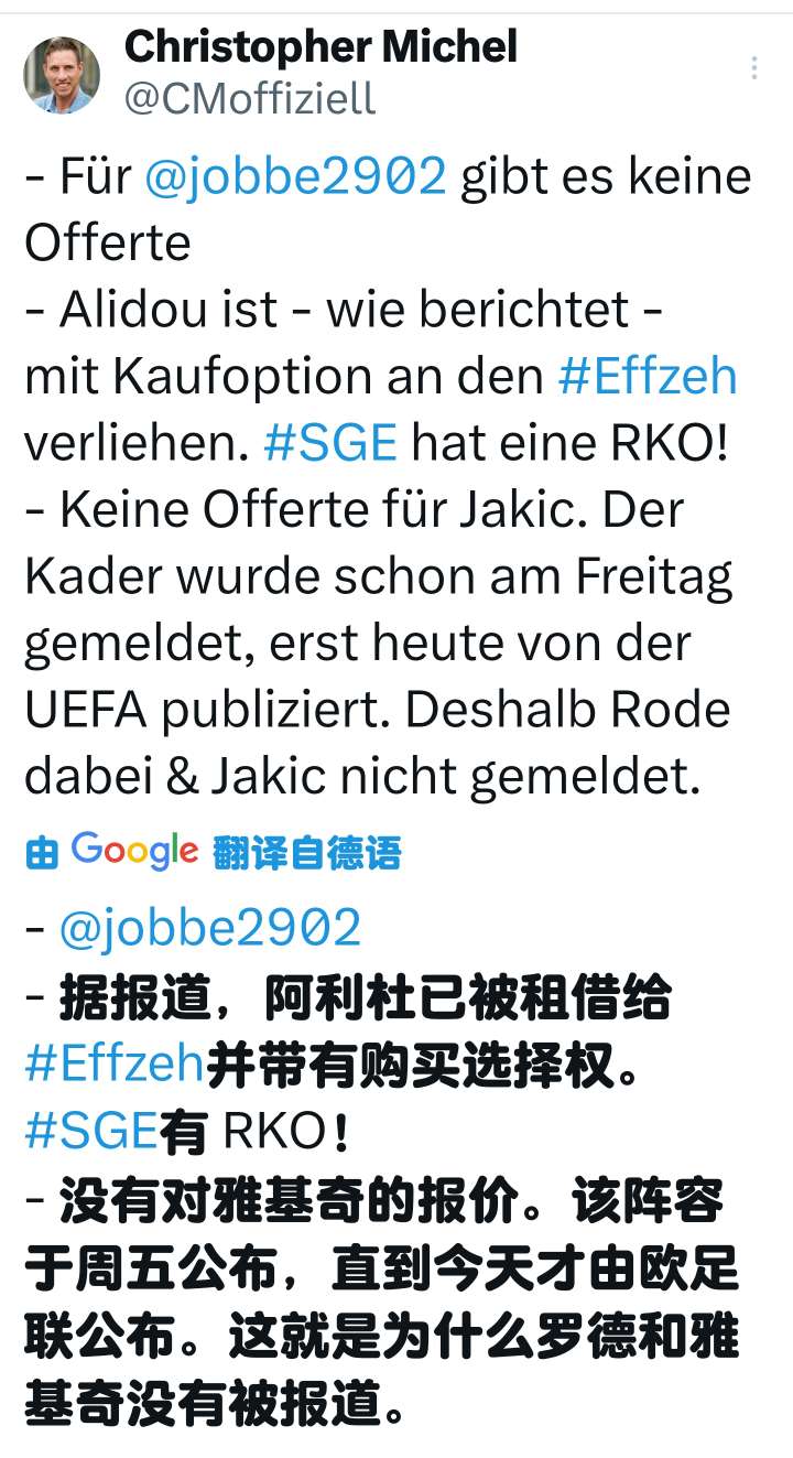 截止到目前為止,截止法蘭克福沒有收到有關林德斯特倫和亞基奇的到目到有德