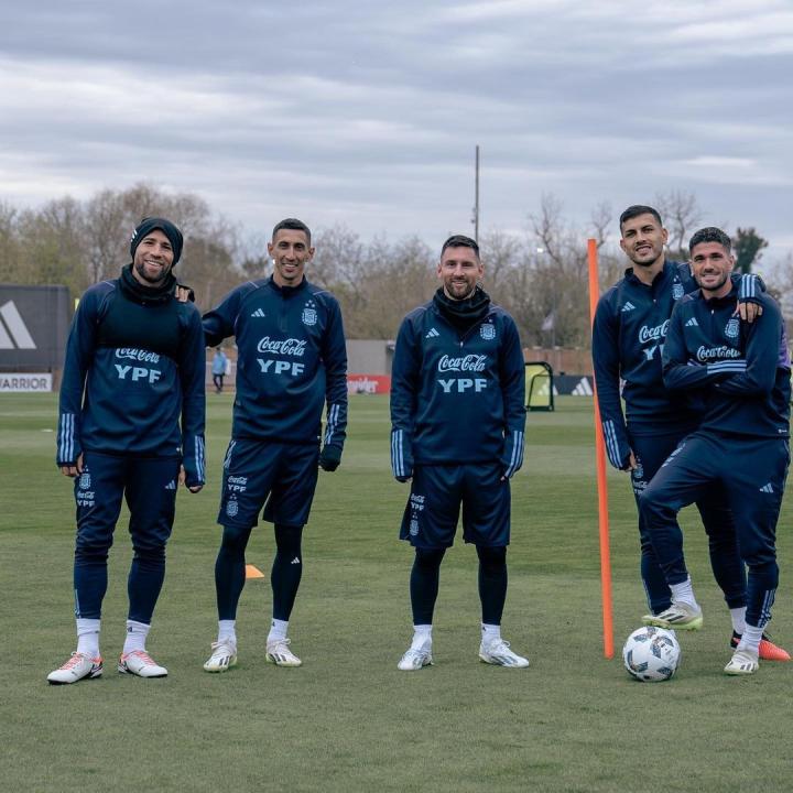 梅西晒阿根廷队集训照,迪马利亚、帕雷德斯等人在旁