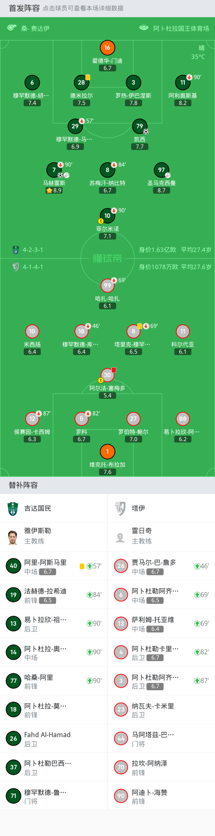 吉達國民首發:菲爾米諾, 馬赫雷斯, 阿利奧斯基, 愛德華-門迪, 圣馬克西曼, 凱西, 德米拉爾, 羅熱-伊巴涅斯, 蘇梅汗-納比特, 穆罕默德-馬吉哈德, 穆罕默德-胡拉伊