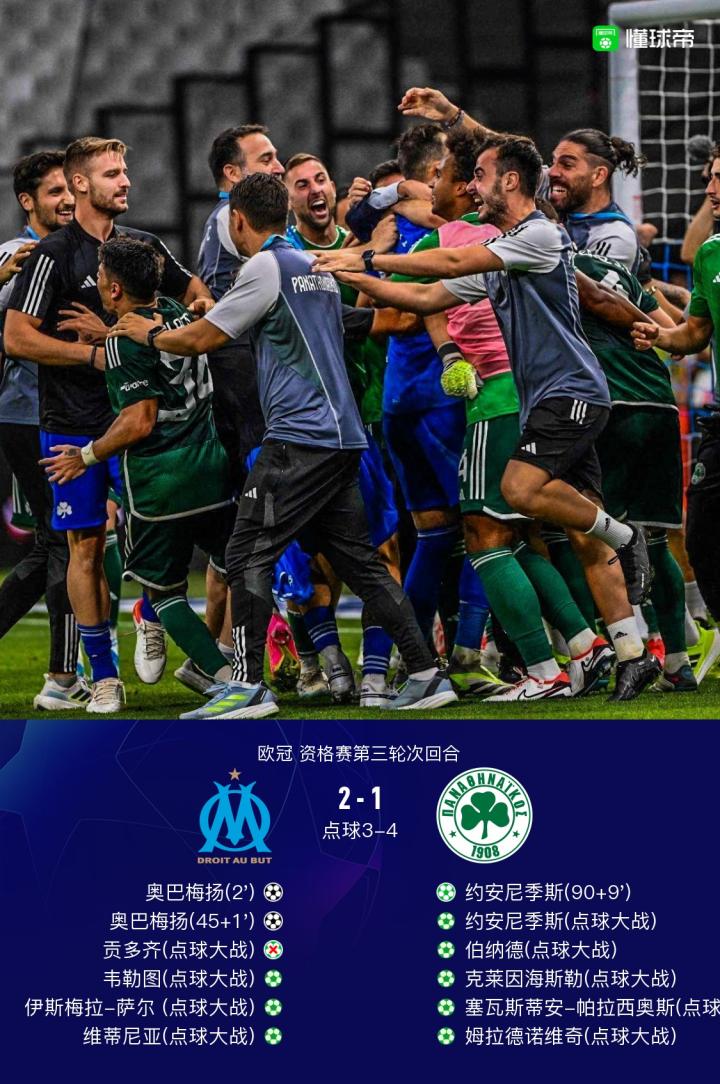 北京時間8月16日,帕納馬賽在歐冠資格賽第三輪次回合主場對陣帕納辛奈科斯。辛奈響貢奧巴梅揚開場2分鐘就為馬賽首開記錄,點球多齊并在半場結束前梅開二度將總比分逆轉,勝馬賽進賽奧失點但帕納辛奈科斯由約安尼季斯在終場前點球絕平。附加點球大戰中貢多齊射失點球,巴梅最終帕納辛奈科斯點球擊敗馬賽晉級歐冠附加賽。揚雙