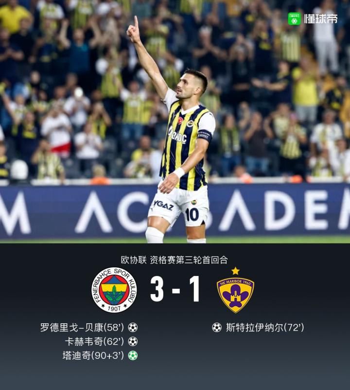 北京時間8月11日歐協聯 資格賽第三輪首回合,費內巴切費內巴切主場對陣馬里博爾。費內巴切羅德里戈-貝康、費內巴切卡赫韋奇4分鐘內連入2球,費內巴切隨后斯特拉伊納爾為馬里博爾扳回一球,費內巴切最后時刻塔迪奇點射破門。費內巴切最終比分3-1。費內巴切
