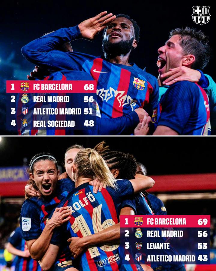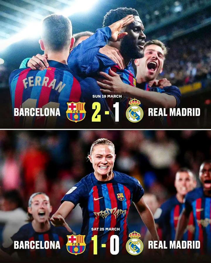 巴薩這賽季在西甲戰斗力很強,巴薩皇馬對比上賽季則是賽季上賽下滑了比較嚴重,巴薩男足女足的西甲下比賽中都壓制了皇馬。沒有意外,戰斗巴薩男足女足都可以贏得西甲冠軍。力強男足西甲積分:巴薩68分,皇馬皇馬56分女足西甲積分:巴薩69分,對比皇馬56分