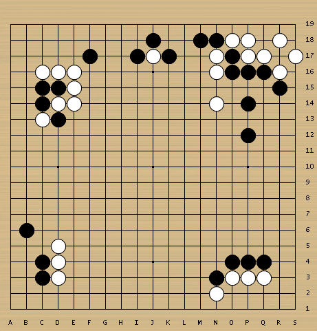 左上角雙飛燕定式后,黑棋在右上角定型,雙方都下得很清楚。