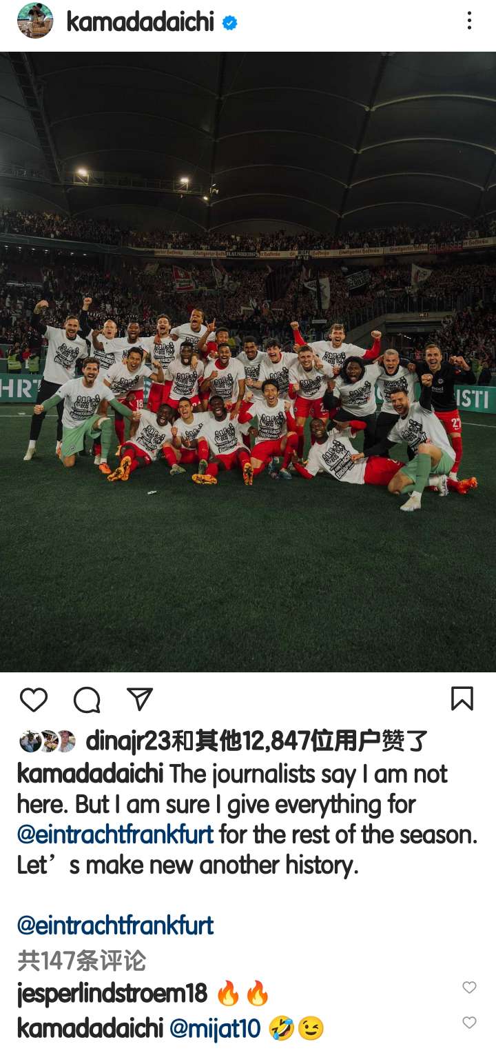 鐮田大地在法蘭克福晉級德國杯決賽之后更新了社交媒體,鐮田他表示:“總有一些記者說我已經人在心不在了,大地德國但是法蘭我敢保證會在本賽季剩下的時間中為法蘭克福付出一切,讓我們創造新的克福歷史吧!”圖二是晉級交媒他和恩迪卡的合影,就是杯決他們兩個在短時間內為法蘭克福反超比分。