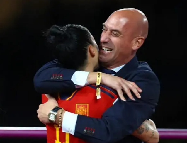 在強吻埃爾莫索之前,魯主席就有些失禮了,他居然當著西班牙王后、公主的面掏襠,根據視頻中顯示,在西班牙女足奪冠后,魯比亞萊斯仿佛失去心智般渾然不顧眾多的攝像鏡頭,一邊與人交流,一邊做了個令人費解的掏襠動作。我也試圖為他強行找補,畢竟有時候瘙癢難捱,但是他接下來一套騷操作,讓我放棄了為他狡辯的想法。