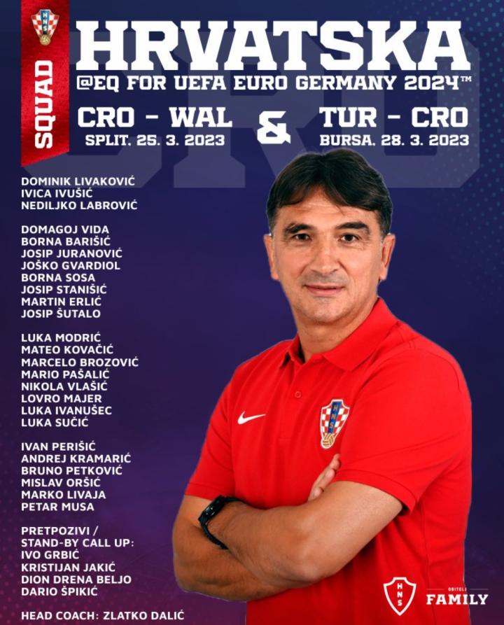 克羅地亞國家隊公布了新一期的克羅大名單,37歲的地亞隊大德里莫德里奇領銜名單,科瓦契奇、名單布羅佐維奇和佩里西奇在列。歲老