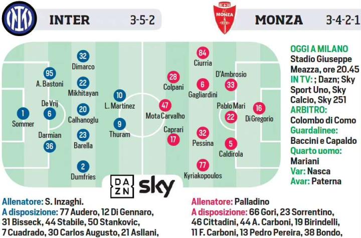 意甲首轮国际米兰vs蒙扎,米兰体育报与罗马体育报...