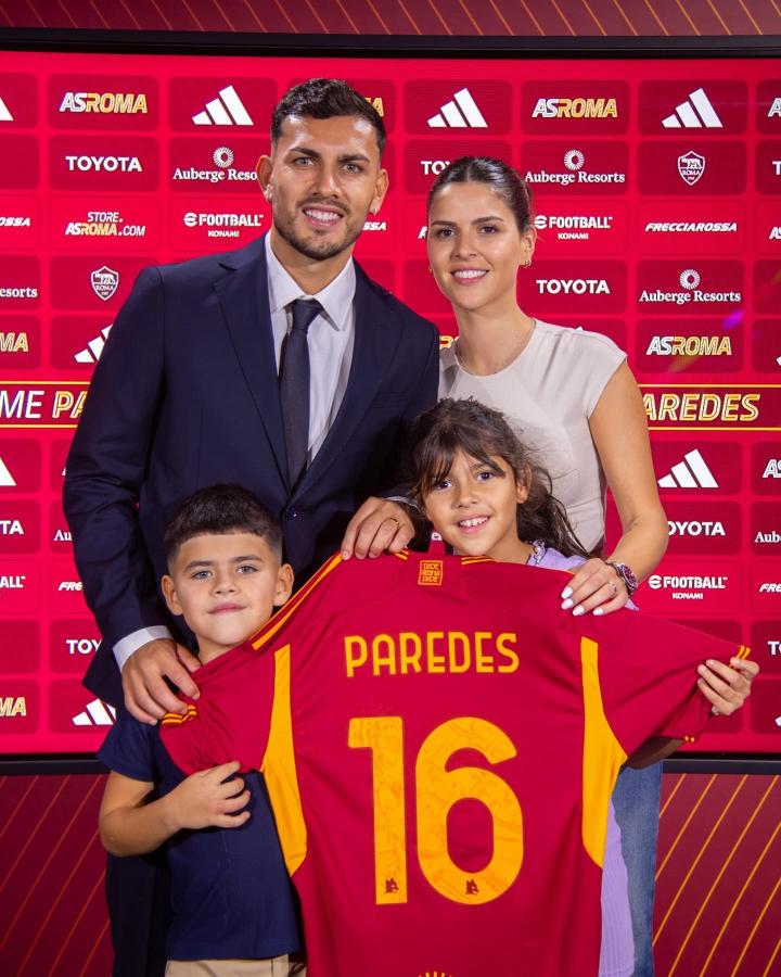 重回罗马,帕雷德斯妻子晒一家四口亮相罗马照片