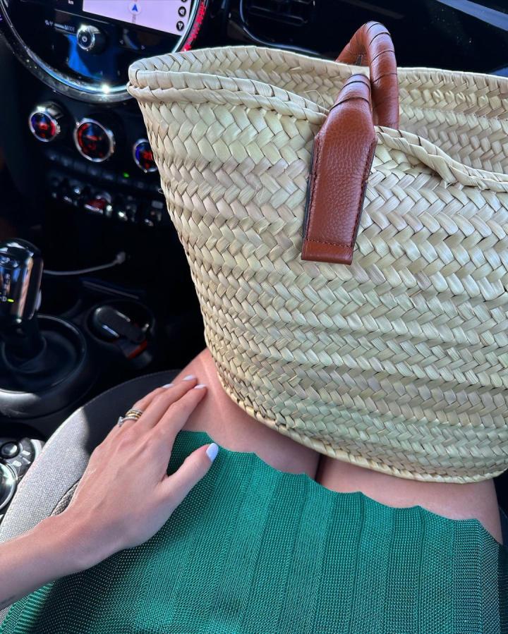 卡卡妻子卡羅琳娜秀身材,妻卡裙盡綠色連衣裙盡顯苗條曲線。羅琳綠色連衣