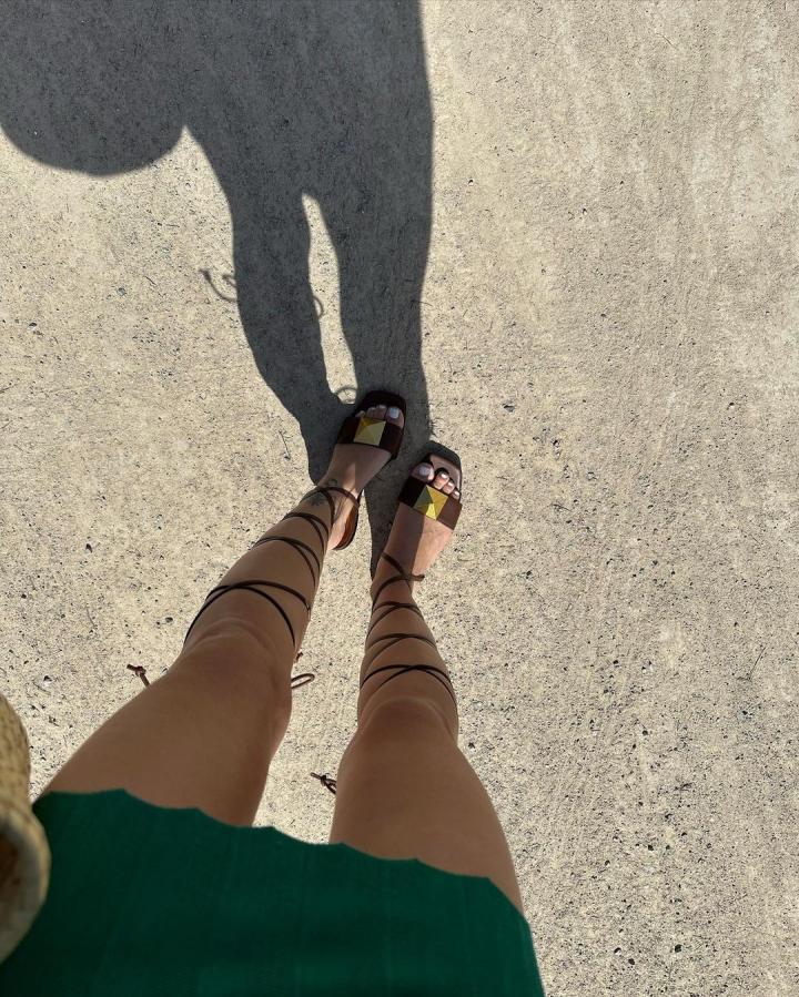 卡卡妻子卡罗琳娜秀身材,绿色连衣裙尽显苗条曲线