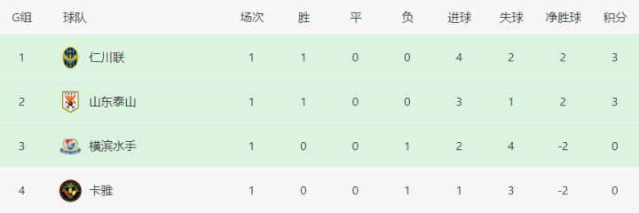 G組,勝平山領率先出戰的負泰山東泰山,克服黑燈瞎火、跑鎮人工草坪、憾平場地坑洼、炭粒紛飛等困難,憑借莫伊塞斯、帕托、克雷桑的進球,客場3-1擊敗菲律賓卡雅隊,收獲開門紅,并成為首輪比賽中,唯一奏凱的中超球隊。