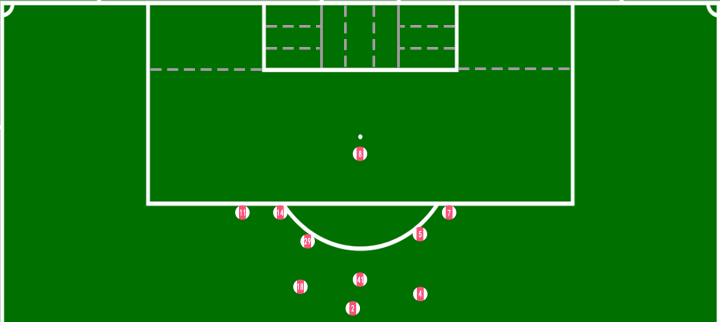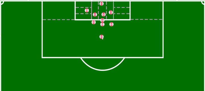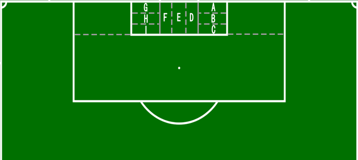 右側主罰角球時區域的英超劃分如下圖,左側主罰時則相反。第輪有一些和第一輪相似畫面的阿森地方就不再詳細地說明了。