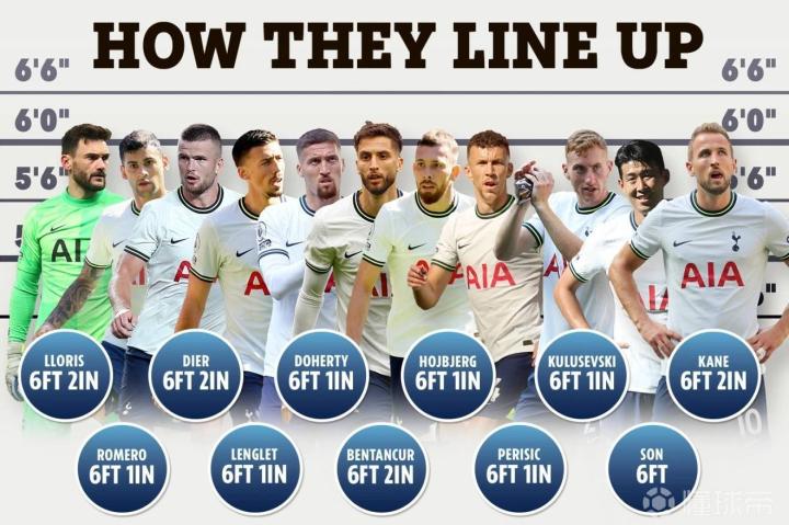(圖)高個球員扎堆,熱刺的陣容“剛而易折”,中場技術含量不足導致凱恩受累。