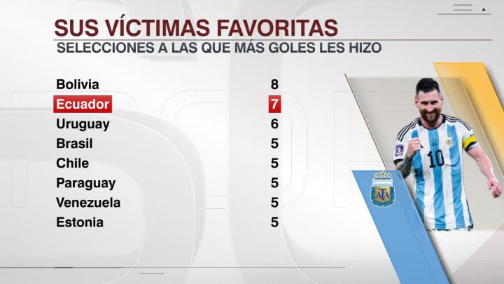 7球,厄瓜多尔是梅西国家队生涯进球第二多的球队玻...