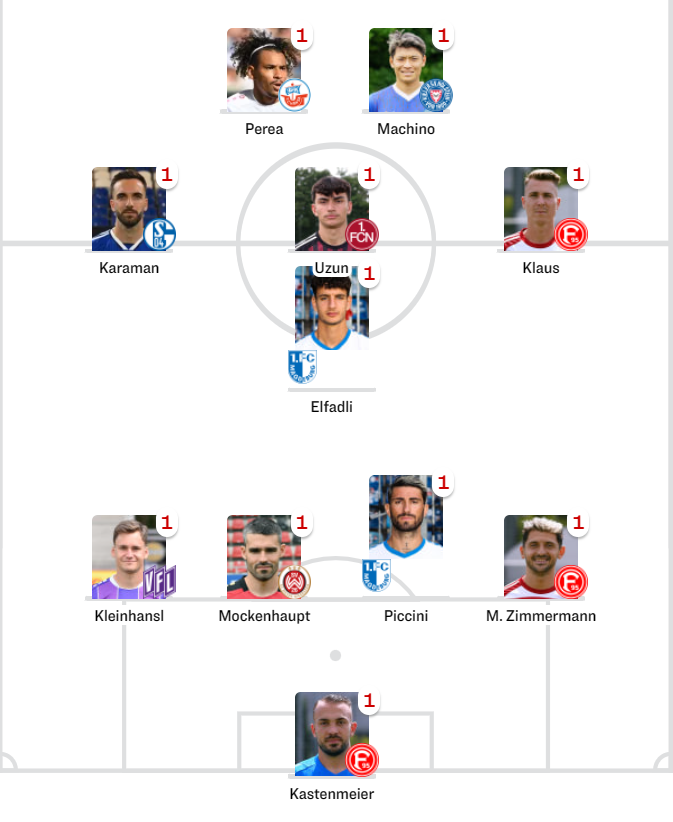中場:卡拉曼(沙爾克)、曼佩烏尊(紐倫堡)、雷亞領銜埃爾法得利(馬格德堡)、杜塞克勞斯(杜塞爾多夫)